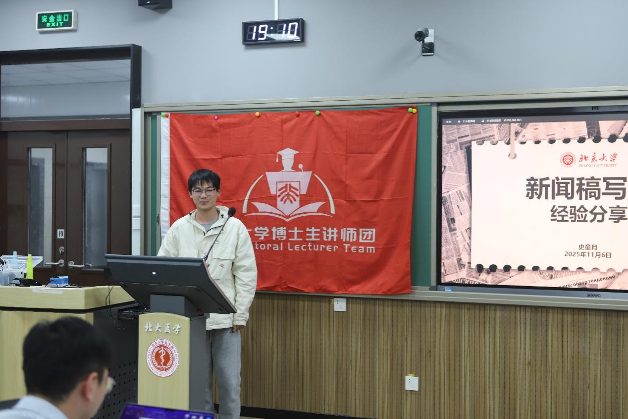 2023级健康大数据专业硕士生史童月结合在北大官微的工作经历,聚焦"校园新闻宣传能力提升",针对人物采访、活动报道等常见新闻体裁,系统讲解了选题策划、内容撰写、亮点挖掘等核心技巧,助力学生骨干提升宣传工作质效,更好传递校园正能量。