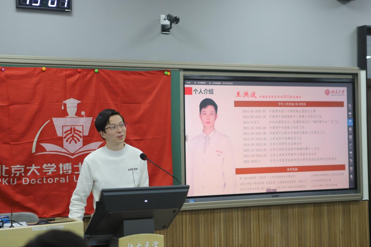 2022级口腔医学技术博士生王洪波结合个人丰富的学生工作经历,围绕"学生骨干的职责定位与工作方法"展开分享。他从"明确工作方向、精准对接需求、打造特色活动"三个维度,首先厘清“学生干部”与“学生骨干”的概念差异,明确学生骨干的角色定位,随后通过具体案例讲解如何高效服务青年学生、凝聚集体力量,为参会骨干提供了可借鉴的工作思路与实操技巧。