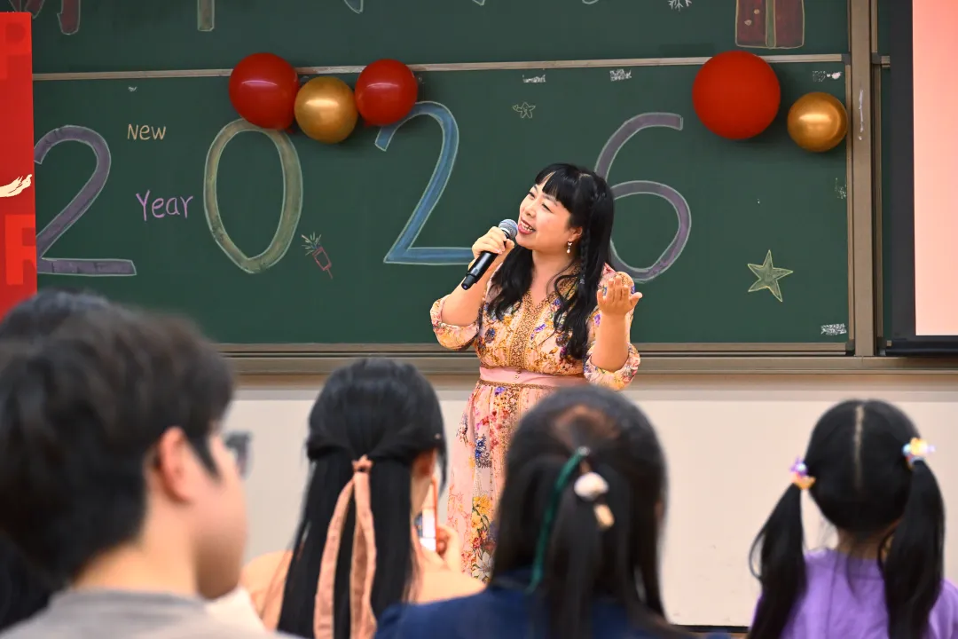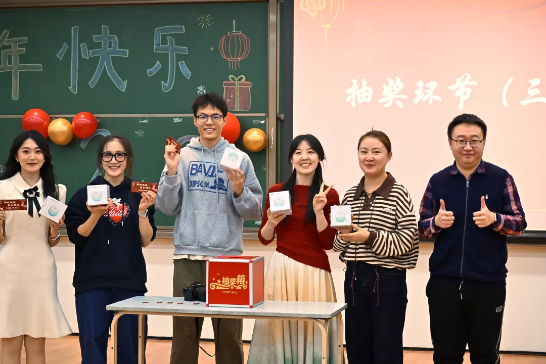 在暖场游戏环节,“幸运摇一摇”“emoji猜成语”“有缘人报数”“歌王争霸”等趣味互动游戏点燃现场气氛,师生们踊跃参与,笑声与欢呼声此起彼伏。