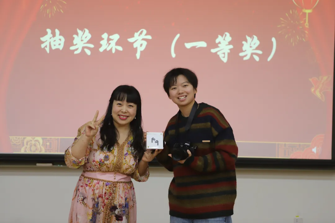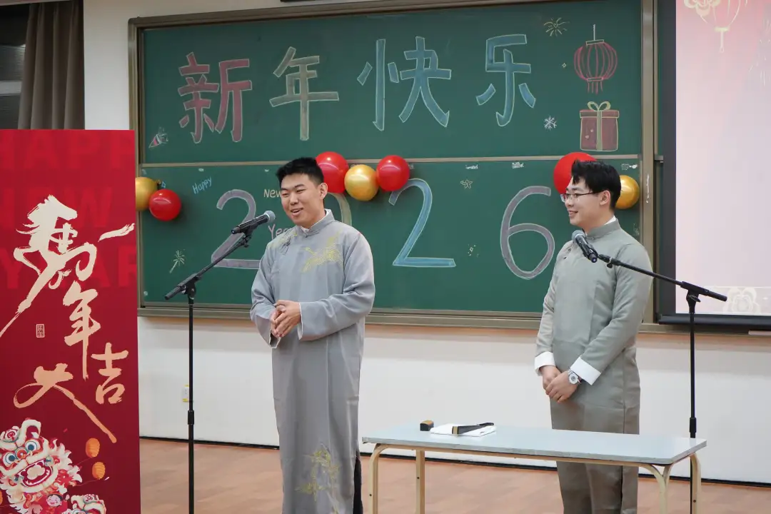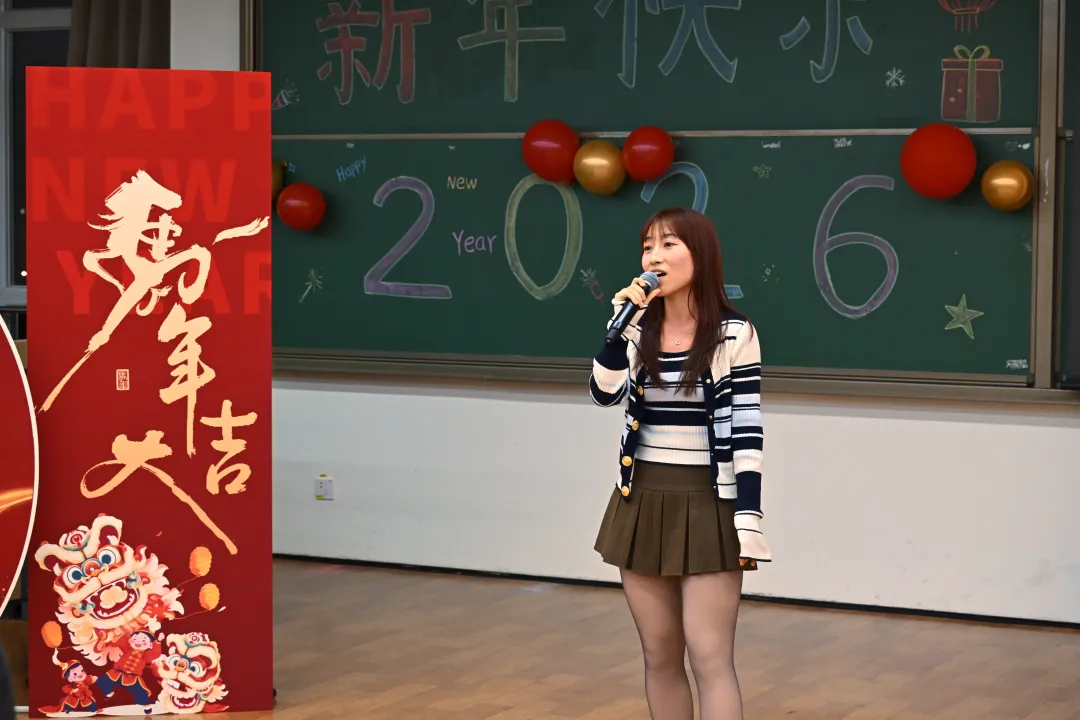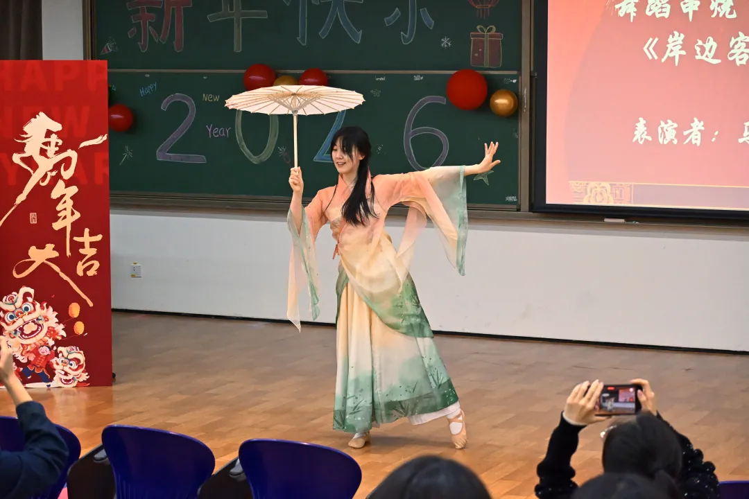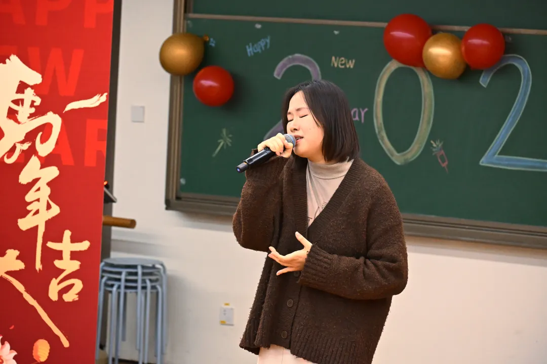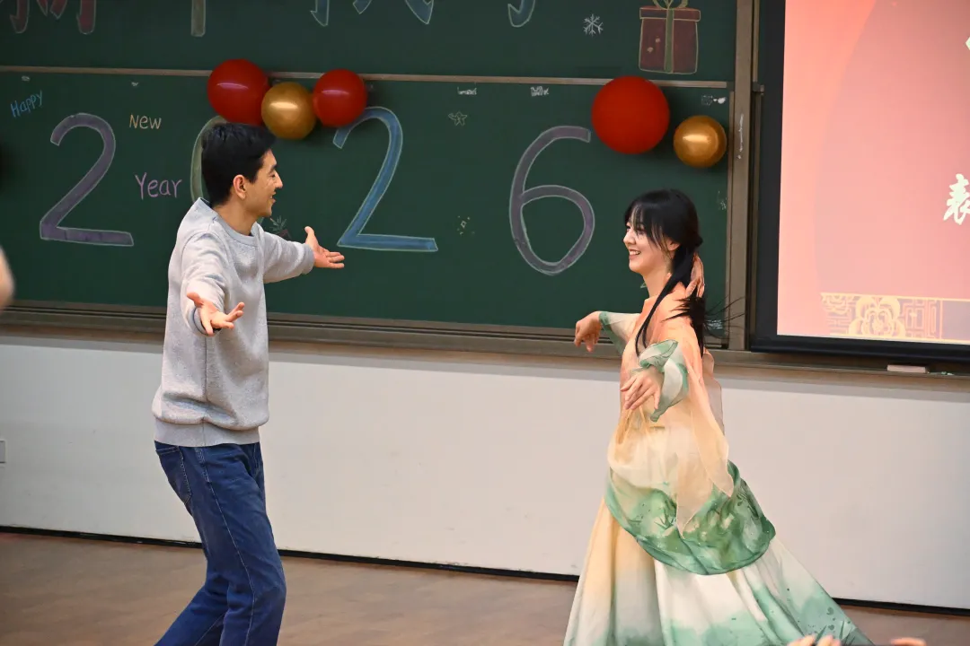 医学技术研究院的各位老师也参与到了新年晚会的节目和游戏中,用精彩的节目为大家献上新春祝福,在游戏中和同学们暖心互动。马昕蕾老师与阿卜杜老师联袂带来舞蹈串烧,将《女儿心如水》的温婉柔情、《岸边客》的洒脱自如与《新疆舞》的热情奔放完美融合,赢得了全场热烈的掌声;武珍珍老师深情演唱《我在春天等你》,歌声中满载对新年的美好期许,令人心生暖意。