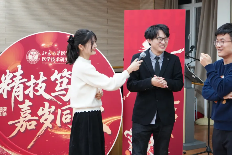 时间:2026-01-132025年12月30日晚,由北京大学医学部直属单位团委、北京大学医学部直属单位研究生会主办的“精技笃医·嘉岁同欢”北京大学医学部医学技术研究院2026新年联欢会在逸夫楼723教室温暖启幕。医学技术研究院院长韩鸿宾,医学技术联合党支部书记李辉,医学技术研究院青年PI谢肇恒老师、黄益星老师、刘欣雨老师,特邀嘉宾医学技术研究院原辅导员张宇皓老师、陈月老师,医学技术研究院教学办刘英会老师、马昕蕾老师,医学技术研究院综合办武珍珍老师,医学部直属单位团委书记、医学技术研究院辅导员尹秋舒老师,医学技术研究院辅导员于佳弘老师、阿卜杜老师出席新年联欢会,与同学们欢聚一堂,共迎新年的到来。联欢会由医学技术研究院2025级研究生张淇、杨兆和、钟双阳与2025级本科生吴宇彤主持。