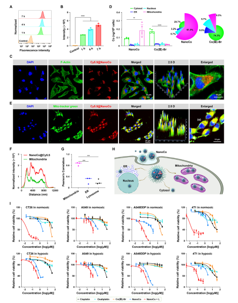 图4. NanoCo在线粒体中积累,并在NIR-II照射下杀死癌细胞